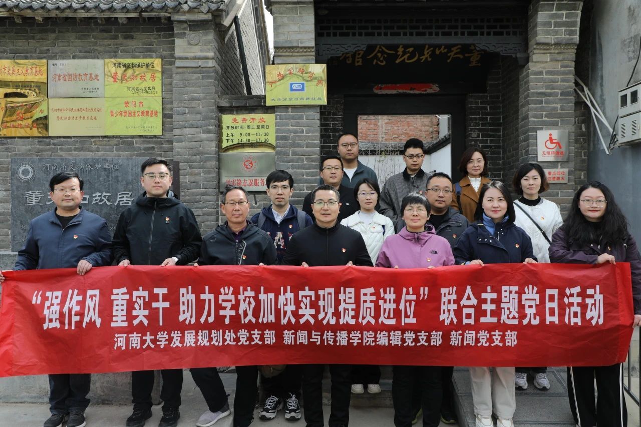 3月30日,在清明节即将到来之际,为铭记先烈遗志,传承红色精神,校发展规划处党支部与公司编辑党支部、新闻党支部,前往荥阳市董天知将军故居,联合开展“强作风 重实干 助力公司加快实现提质进位”主题党日活动。