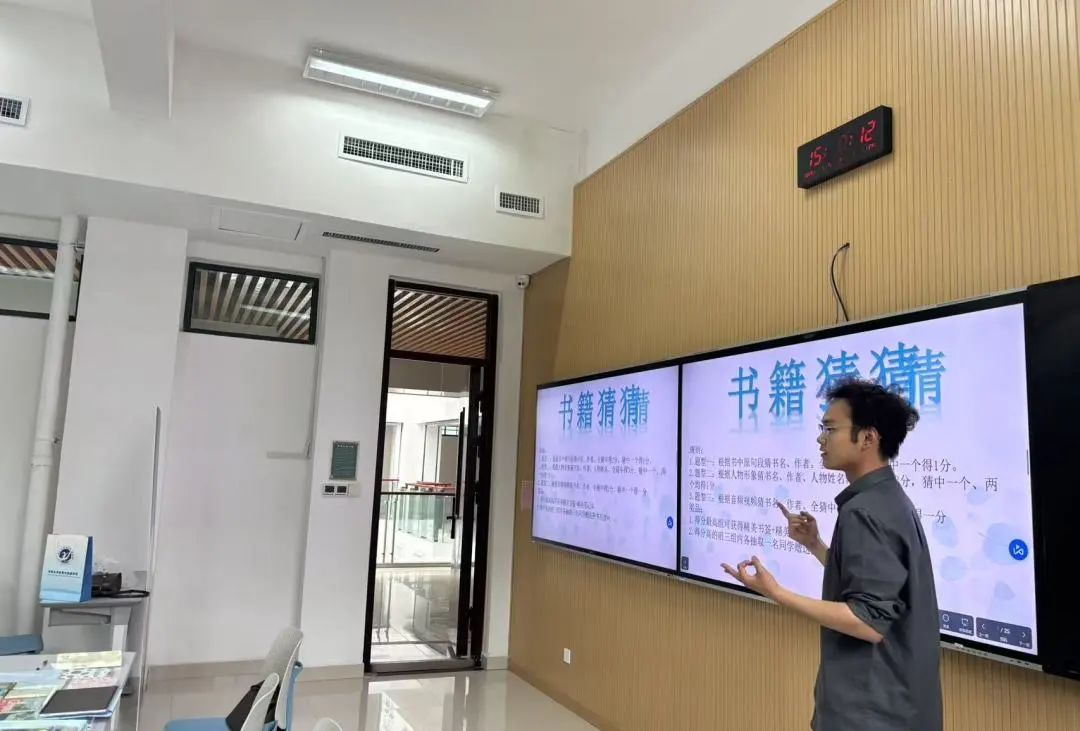 活动伊始,主持人戴雨欣、张扬、张一鸣介绍了本次读书会的主题、目的和活动流程。在“书籍猜猜猜”环节,同学们根据关键情节、角色描述或名言警句等提示语抢答书名。