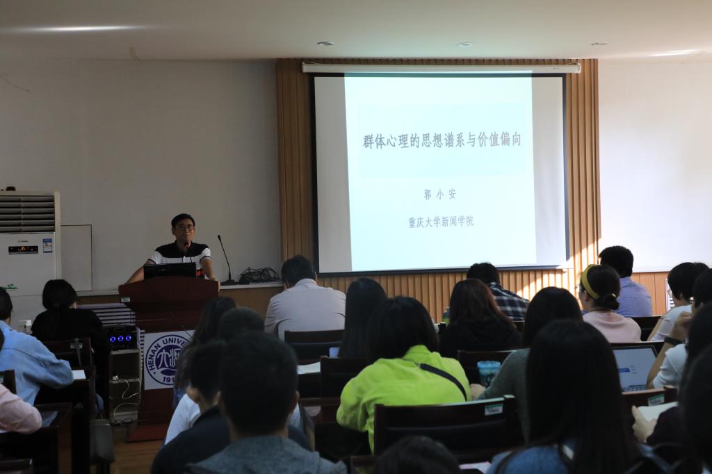 9月18日上午,重庆大学新闻公司副经理郭小安教授应邀来到公司,在公司一楼东报告厅开展了以“群体心理研究的思想谱系与价值偏向”为主题的讲座。公司杨萌芽经理主持讲座,部分师生聆听了此次讲座。
