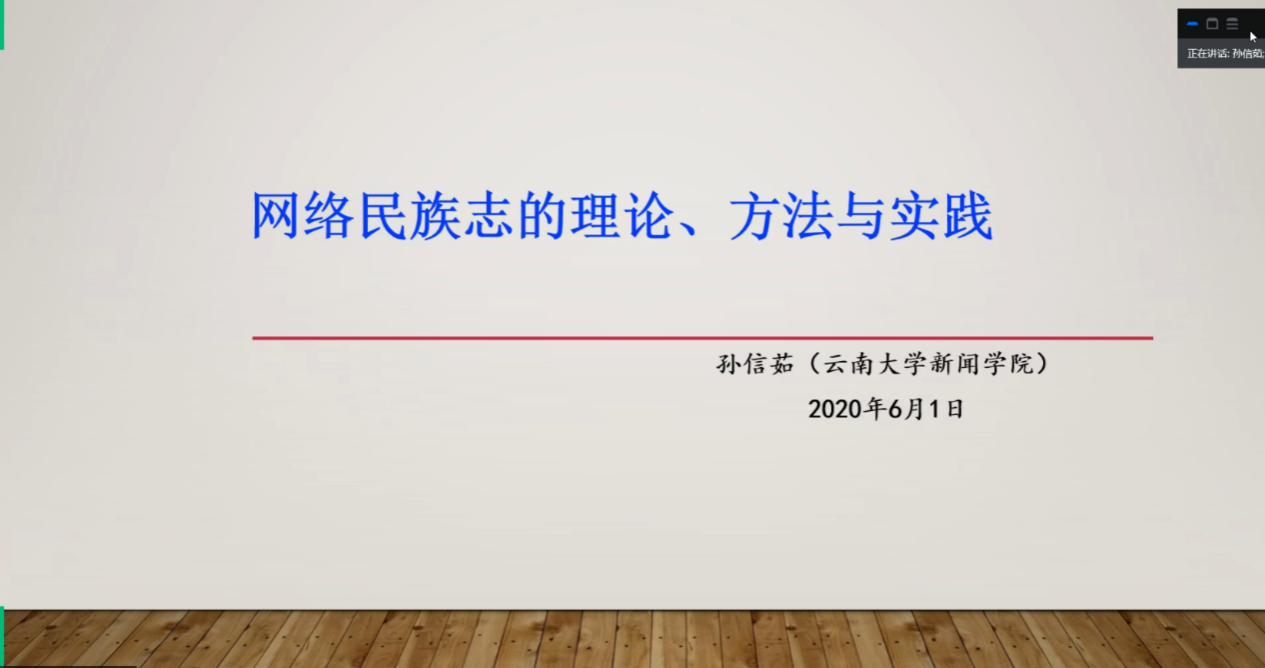 6月1日晚7时,云南大学新闻公司副经理孙信茹教授受邀为公司员工开展主题为“网络民族志的理论、方法与研究”的讲座。讲座由中国社会科公司新闻所副研究员沙垚老师主持。