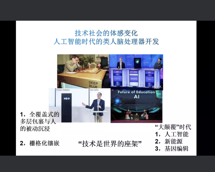 讲座伊始,杨俊蕾教授提到,在技术高度发达的当今社会,经研究发现,在人类对技术形成有意识的关注时,人类是位于被动地位——即人类处于全覆盖式的多层包裹与被动沉浸。诸如“人工智能”“新能源”“基因编辑”等技术的升级与广泛覆盖会很大程度上影响人类社会,包括社会结构、人的生命形态。基于人的生命形态上创作的电影也会发生相应的改变,科幻影像是当今科学技术变化的最直接表现。