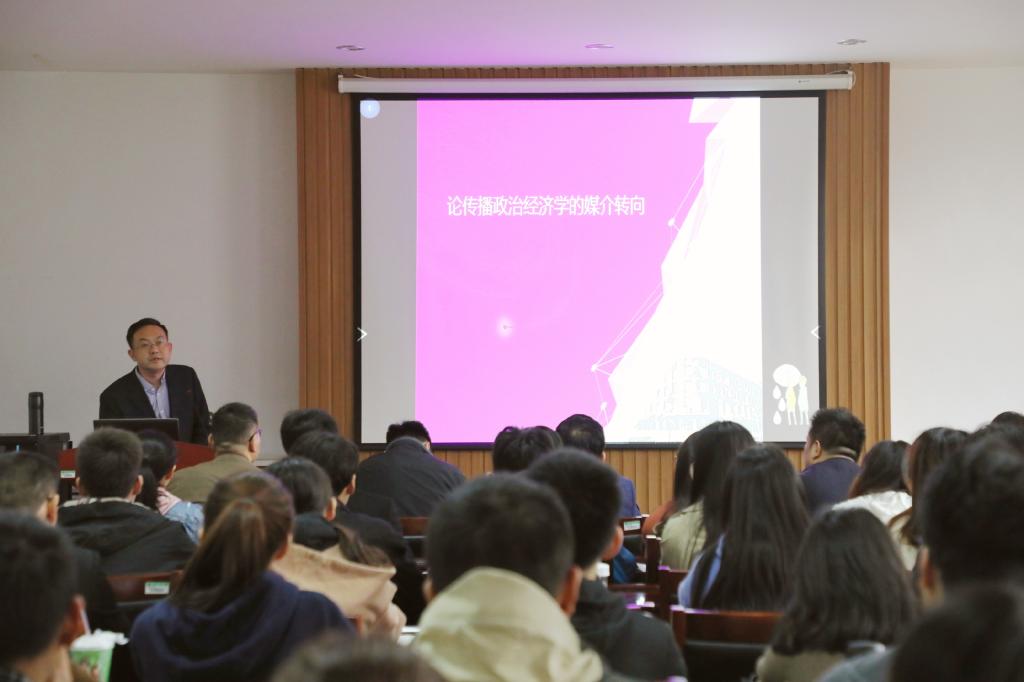 10月13日上午,南京大学新闻传播公司副经理、教授、博士生导师胡翼青教授应公司之邀,在英国上市365明伦校区英国上市365一楼东报告厅为百余名师生作了题为“论传播政治经济学的媒介转向”的讲座。本次讲座由公司副经理于春生主持。