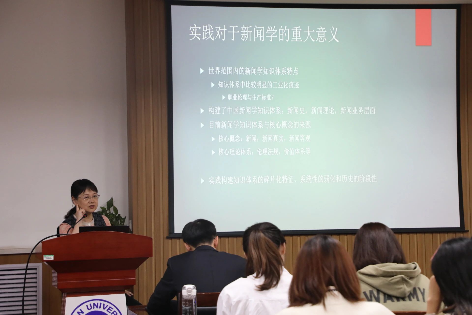王润泽教授从“新闻传播学的知识与知识体系”这一话题展开论述,指出可以从哲学、理论、历史三个维度理解实践,认为实践具有客观性、能动性和社会历史性的基本特征,进而分析实践对于新闻学的重大意义。在“实践转向中的新闻学知识体系创新”这一命题中,王润泽认为新闻理论的创新是核心,这需要当代研究者提出更多回应时代需要的研究问题。