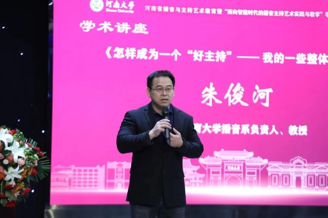 朱俊河教授以“聚焦语言本质”为核心,讲述了“完成播音的思维转向”与“坚定地转向‘说’”两者的重要意义。他指出,“专业化”、“有文化”与“出神入化”是成为播音艺术人才的标准。同时,朱俊河认为,播音主持的“说”包括四个方面,即敢说、能说、会说、说透。通过剖析具体案例,他详细阐释了播音主持专业的员工如何利用大学时间来提升自己的专业能力,从而使自己达到“是说不是读,是解不是说,是知不是解”的较高境界。朱俊河就锻炼能力的方法为在座师生提供了“100段训练计划”的新思路,即主持、评论、解说、演讲、辩论、精彩段落、经典文章。