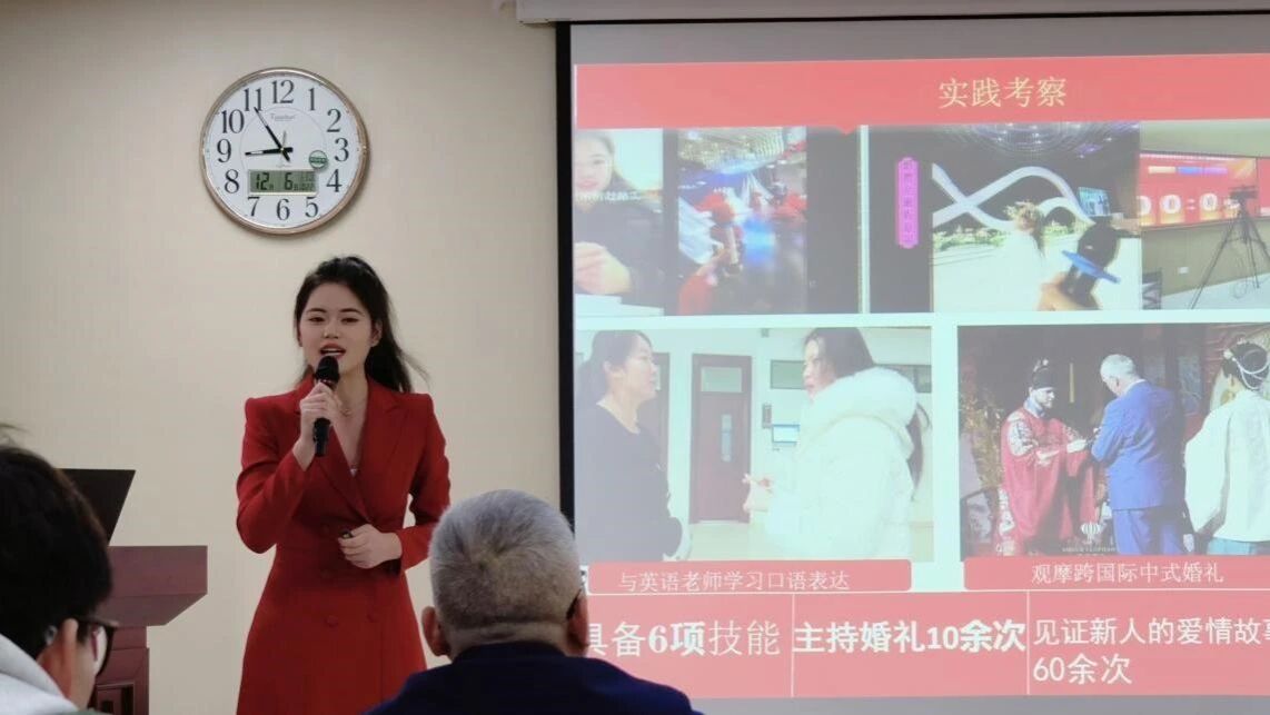 作为初入校园的新生,陈柯羽早早确立了清晰的职业方向。她表示:“我想成为一名新时代的婚礼主持人,传承中国悠久独特的婚俗文化,把这份‘中国喜’和‘中国红’带到更广阔的国际舞台。”备赛期间,她锚定“新时代婚礼主持人”这一职业目标,既注重传承和弘扬中华优秀传统婚俗,也强调根据不同新人的需求与爱情故事,打造专属的个性化婚礼,勾勒出一条既务实又具前瞻性的职业发展路径。