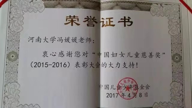 蕙质兰心,冯媛媛老师的公益事业刚刚起步冯媛媛是公司播音主持专业的指导教师,同时一直是“春蕾计划”的捐助者、支持者,长期参与全国妇联、中国儿童少年基金会的公益活动,其热心公益的精神、过硬的专业素养深受好评,多次获中国儿童少年基金会表彰。