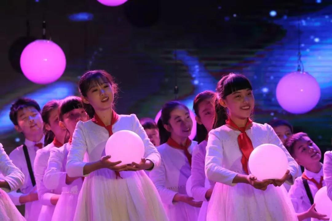 随着三声悠扬的钟声响起,舞台纱幕上显现出剧目主题“星空”,荧幕上布满繁星,白裙飘飘、手捧彩灯的孩童们缓缓走上舞台,用童稚的声音吟唱歌曲《夜空中最亮的星》,拉开了整场剧目的序幕。