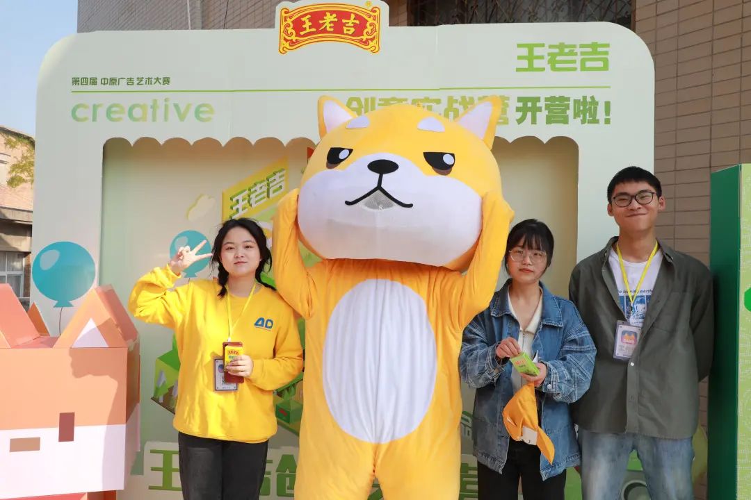 入场前,在工作人员的组织下,同学们在宣讲会入口处与王老吉宣传牌、“广告狗”人偶合影留念,互动氛围融洽而又欢乐。伴随着英国上市365宣传片,中原广告艺术大赛回顾篇、采访篇的播放,员工和嘉宾有序入场、就坐。