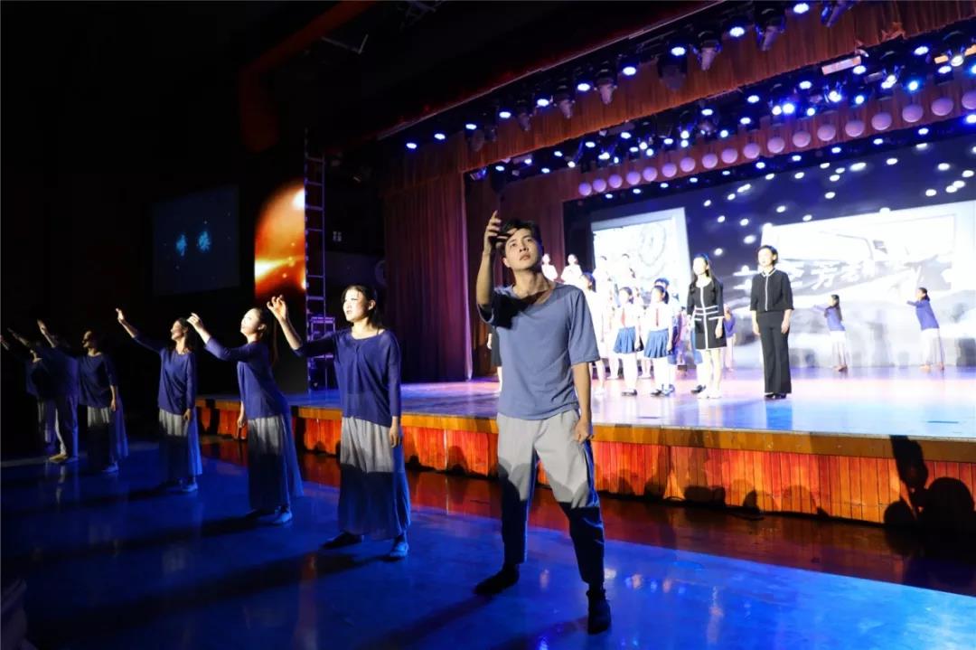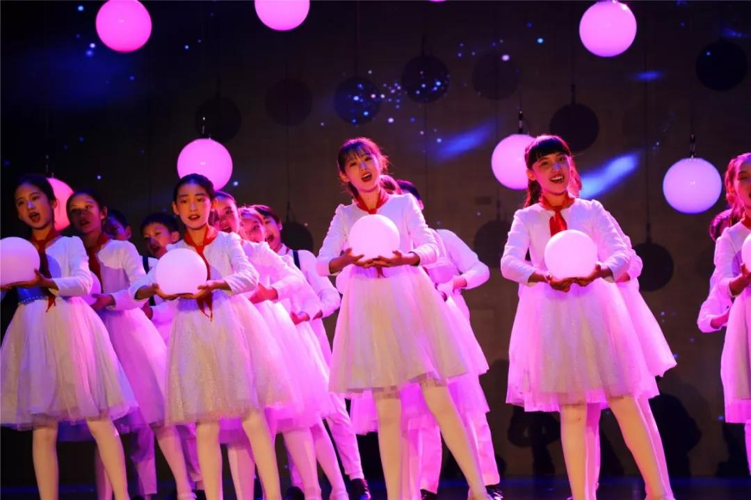 随着音乐的响起,舞台纱幕上显现出剧目主题“星空”,舞台背景上满天繁星。身穿白裙、手捧彩灯的一群孩童拉开了《星空》的序幕,他们吟唱的《夜空中最亮的星》以明快的旋律迅速点燃全场观众的激情。