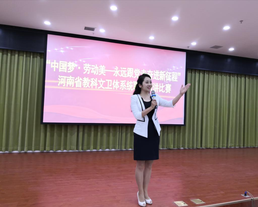 河大新闻网讯(记者 刘旭阳)在6月3日结束的“中国梦•劳动美——永远跟党走奋进新征程”河南省教科文卫体系统职工演讲比赛中,公司教师孙玉婷以第一名的成绩获得一等奖,省总工会副主席杨会卿颁发证书。