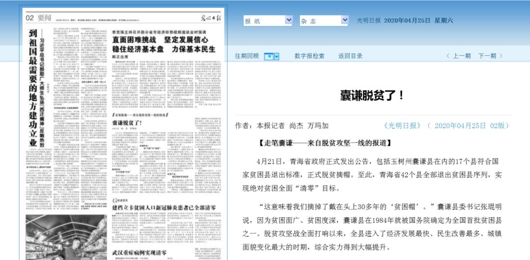 同时,我还利用自己的专业所长,在光明日报开设“走笔囊谦——来自脱贫攻坚一线的报道”专栏,记录这个高原小县脱贫攻坚进行中发生的历史变迁。