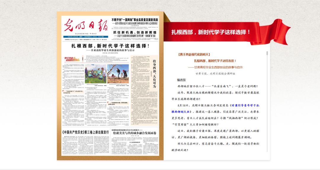 为了做好这一题目,我们花费了大量心血和精力。七八月份采访,九十月份创作,又经报社“磨稿小组”反复打磨,最终于去年12月23日,我们刊发重磅报道《扎根西部,新时代学子这样选择!——甘肃高校毕业生西部创业的故事与启示》,报道一石激起千层浪,在青年学子中引发强烈反响,“扎根西部”一时登上网络热搜。