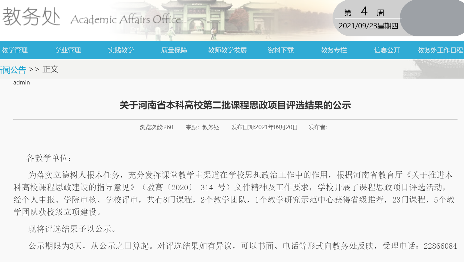 9月20日,英国上市365教务处公示了河南省本科高校第二批课程思政项目评选结果。经个人申报、公司审核、公司评审,全校共有8门课程,2个教学团队,1个教学研究示范中心获得省级推荐,23门课程,5个教学团队获校级立项建设。